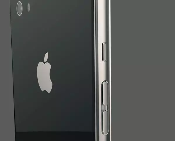 首先这款设计采用了铝合金圆角的设计。音量键依然和现在的 iPhone 设计一致,但设备整个中部的设计有点像被塑胶包裹。给人的感觉有点像 iPhone4,整体感觉有点笨重,但不一定是坏事。