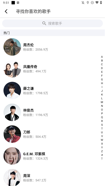5、点击歌手还能查看对应歌手的音乐资源,使用搜索框的方式可以直接搜索对应歌手名字。