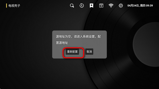 2、首次启动时软件界面为空,需手动配置,点击“重新配置”选项。