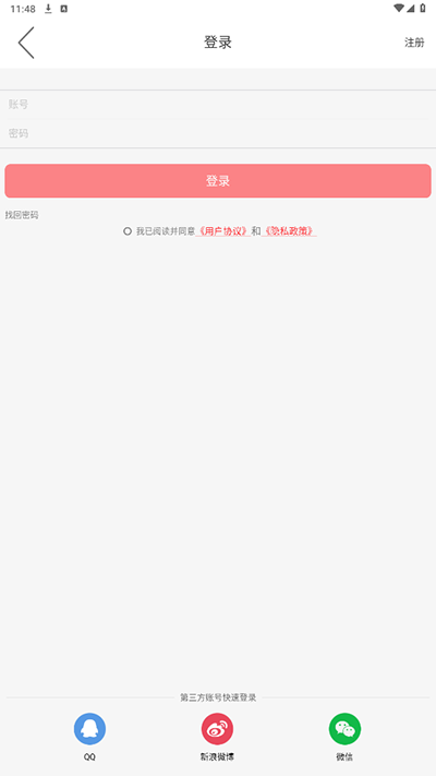 1、打开进入应用,在登录界面进行登录注册
