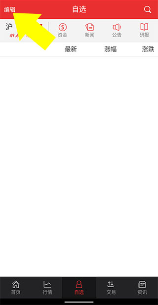 2、底部导航栏点击【我的自选】→ 左上角点击【编辑】进入管理模式。