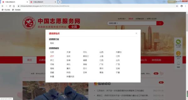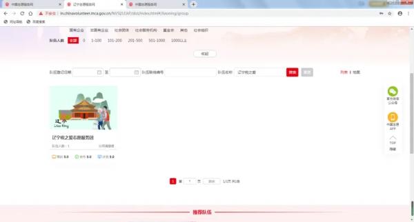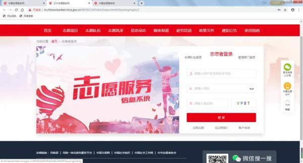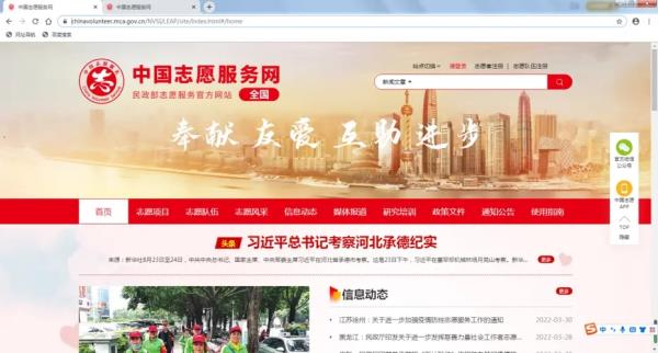 第一步:通过浏览器访问中国志愿服务网(https://chinavolunteer.mca.gov.cn/),点击右上角【志愿者注册】;