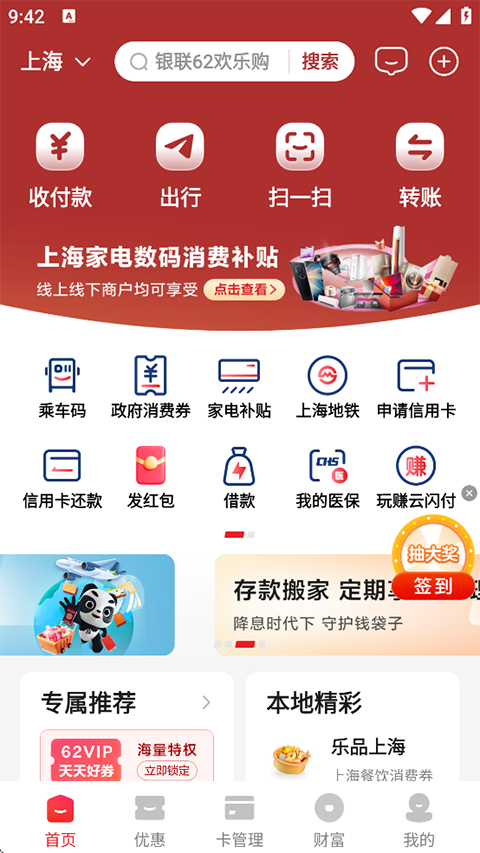 ✅ 权益福利全覆盖:实时同步各大银行最新优惠活动——超市满减、餐饮5折、一元停车、机场贵宾厅、高铁候车礼遇……省钱省心更省力。