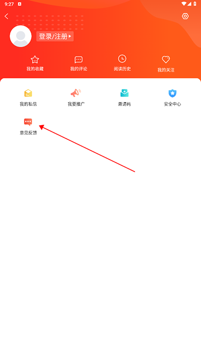 2、进入个人中心后,下滑找到并点击【意见反馈】;