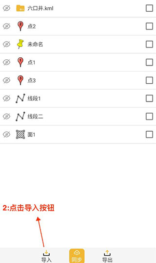 ① 点击「导入」按钮 → 选择本地存储中的KML/KMZ文件 → 自动解析并加载至地图;