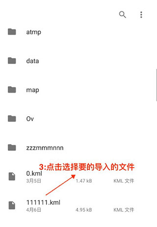 ② 将KML文件通过QQ发送给自己 → 在QQ聊天窗口长按文件 → 选择「用六寸地图打开」→ 即刻加载;