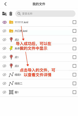 ✅ 专业级地理数据管理:KML/KMZ文件一键导入(支持QQ转发直开、本地文件夹选取双通道),导入后可查看、编辑、增删点线面要素,数据自动归档至“我的文件”,历史记录完整可溯。