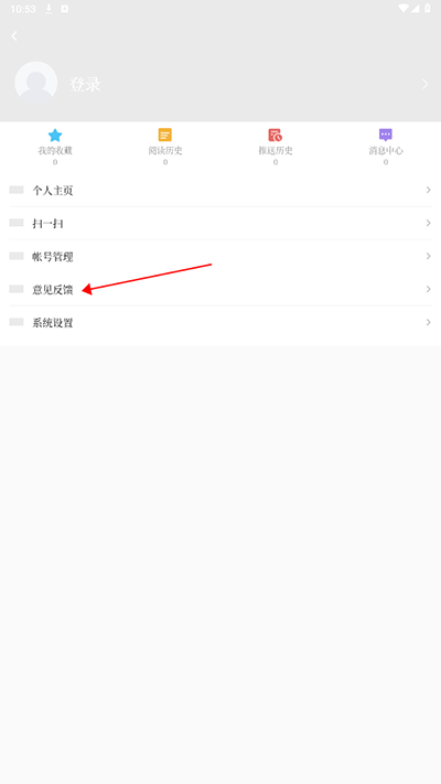 2、在个人中心页面,找到并点击【意见反馈】入口;