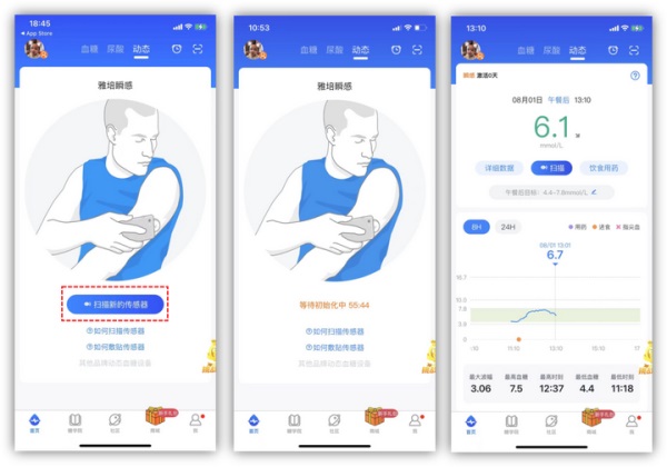 首次使用仅需四步:① 确认手机已开启NFC功能;② 按规范将传感器贴于上臂外侧脂肪丰富处(消毒→按压→揭除助针器);③ 打开App完成账号注册并登录;④ 将手机背部靠近传感器区域,3秒内完成激活与首扫。此后每次测量,只需打开App点击“扫描”,即刻获取最新数据——全程零学习成本,老人也能轻松上手。