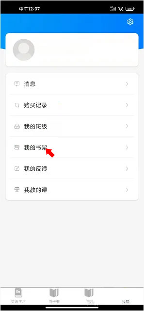 2、进入【我的】页面后,选择【我的书架】;