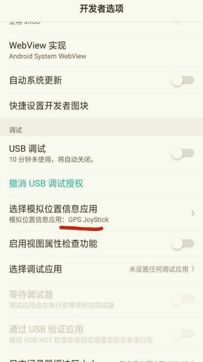 3、在【选择模拟位置应用】列表中,确认启用GPS Joystick