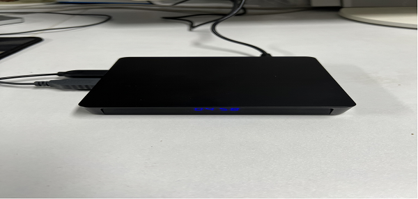 看到键鼠转换器前方蓝色指示灯亮起,此时设备已进入工作状态(接通电源后,需等待1分钟程序启动,方可使用)。