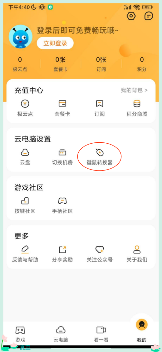 点击连接按钮,转换器将连接到您的手机,此时已经可以在云电脑/云游戏中使用键鼠啦~