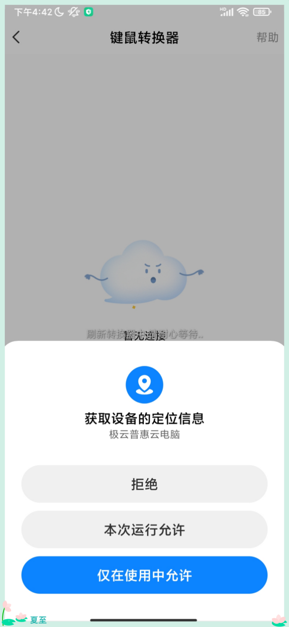 点击键鼠转换器,如出现需获取信息位置的弹窗,请授予权限。