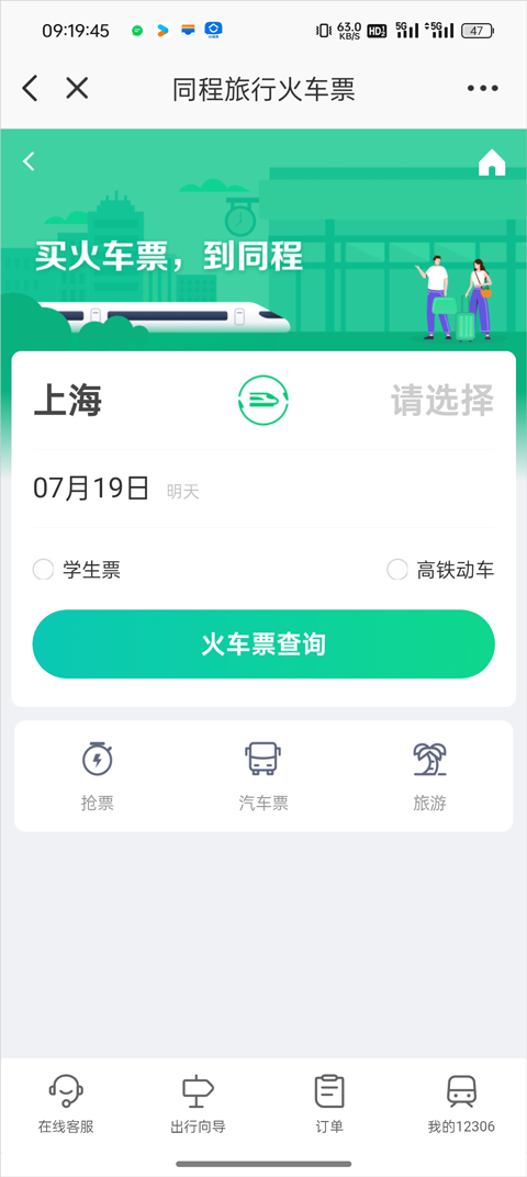 4、输入出发地、目的地及出行日期,点击“查询”按钮。