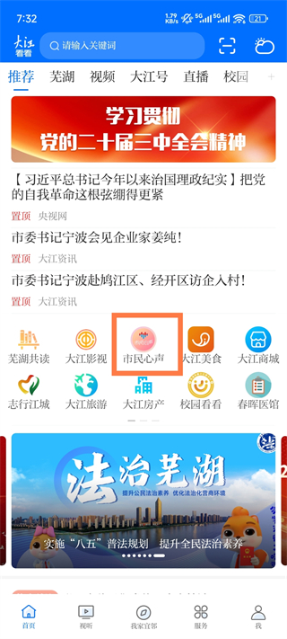 大江看看App是芜湖传媒中心精心打造的城市公共生活服务移动端。作为扎根芜湖本土的智能化服务平台,它集资讯、生活、服务、互动、便民、直播、政务等功能于一体,致力于为市民提供高效便捷的数字化生活体验。