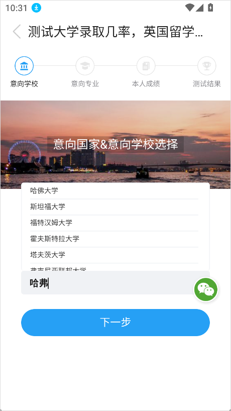 - 输入意向国家与目标学校名称。