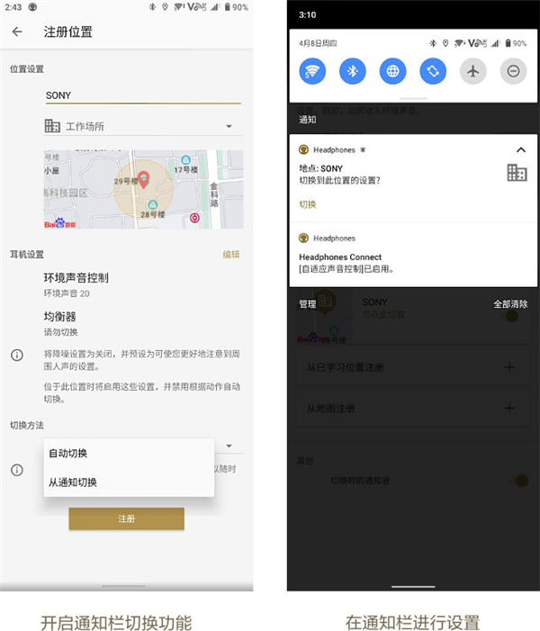 开启更新版自适应声音控制功能后,可自动检测你的活动状态和活动地点 *1,并通过学习和识别你常去的场所,比如办公室、健身房或咖啡厅,可自动切换预设的环境声和降噪方案,实现智能降噪。
