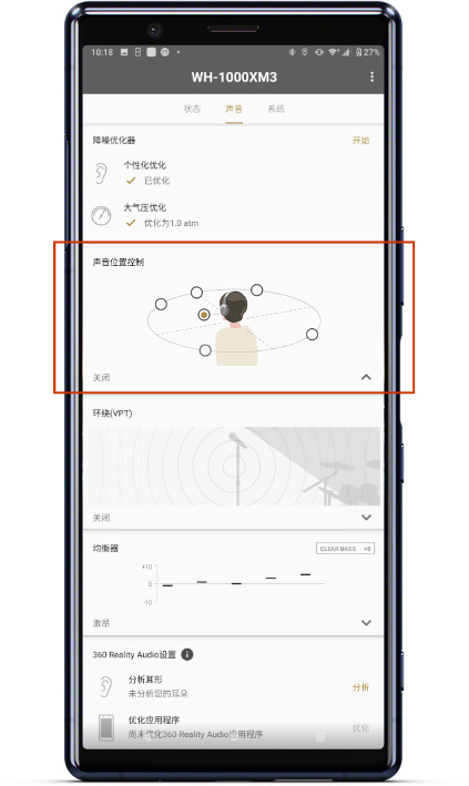 1、可自定义耳机内置的“环绕音效”和“均衡器”功能。