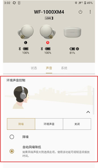 3、自适应声音控制”可识别您的行动并自动设置为环境声音模式。