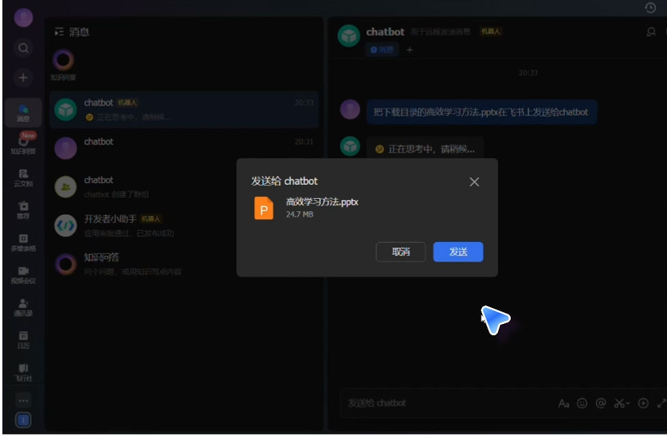 2、手机仅需发送消息,电脑端即可精准执行任务,进度实时回传至移动端。