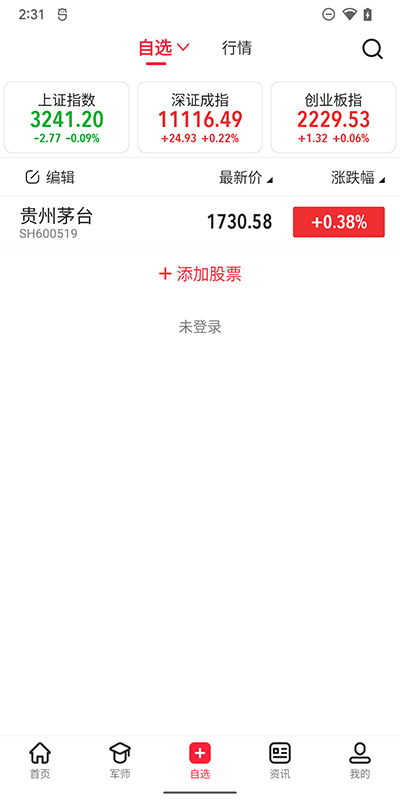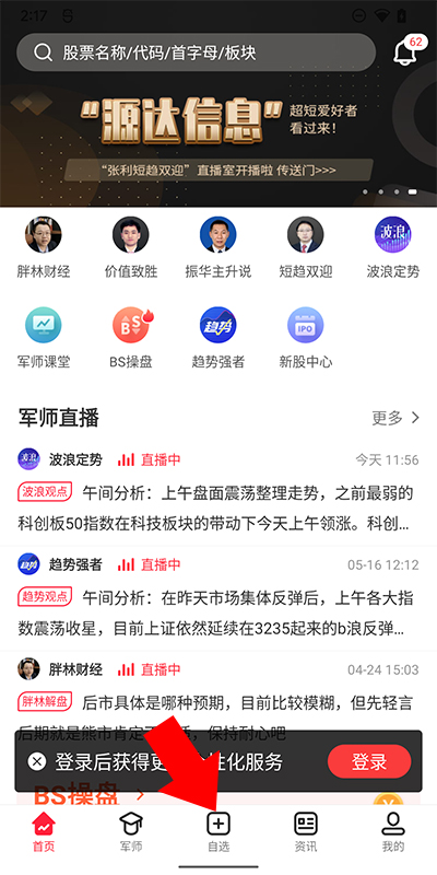 股军师怎么添加自选股?