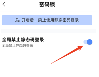 2、在设置页面中,关闭“全局禁止静态密码登录”开关即可恢复使用静态密码登录;