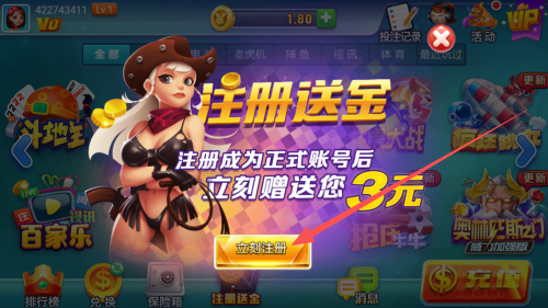 下载并打开游戏后,进入大厅点击“注册送金”按钮;在弹出页面中选择“立即注册”,填写手机号、接收验证码并设置密码,即可完成注册并领取金币奖励。整个流程简单快捷,三步搞定,即刻开打!