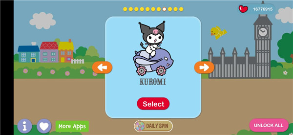 2、选择你要玩的人物角色,这里有非常多的角色供玩家们选择,比如:凯蒂猫,美乐蒂,布丁狗、库洛米等等三丽鸥中的角色;
