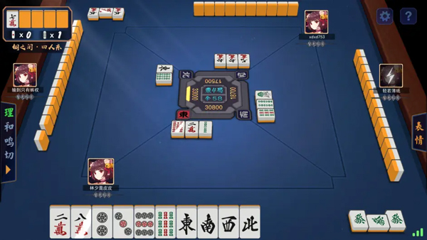 主界面左侧为可互动的和风少女角色,点击触发专属语音(持续更新中);右侧清晰分列【友人场】【比赛场】【段位场】三大入口。对战中牌面采用日式传统字体设计,操作响应毫秒级:点击出牌、轻触完成吃碰杠、长按预览听牌提示——所有交互为策略服务,绝不干扰思考节奏。