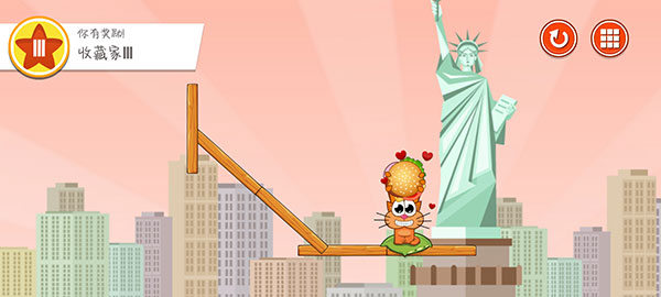 3、让汉堡滚落在猫咪的身边,猫咪就可以吃到汉堡啦