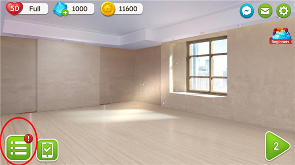 2、点击下方感叹号按钮即可开始家居装修。