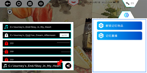 3、进入游戏后在首页选择记忆核心名称以及章节名即可开始游戏,想要查看已经解锁的记忆物品或者重播记忆仅需点击右下角的芯片按钮