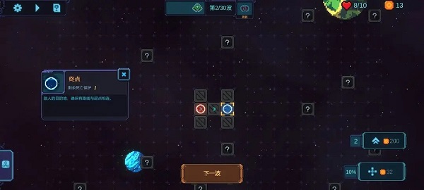 胜利条件:在生命盾降低为0之前,抵挡住敌人的所有波次的进攻
