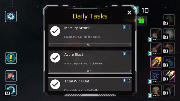 毁灭带来的刺激感,升级你的行星让你可以更好的感受撞击感,完成你的毁灭计划;