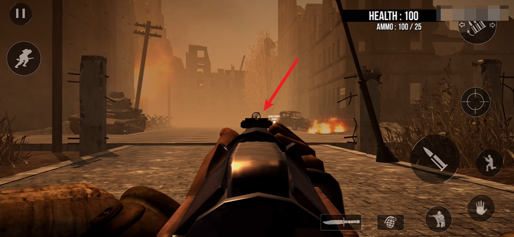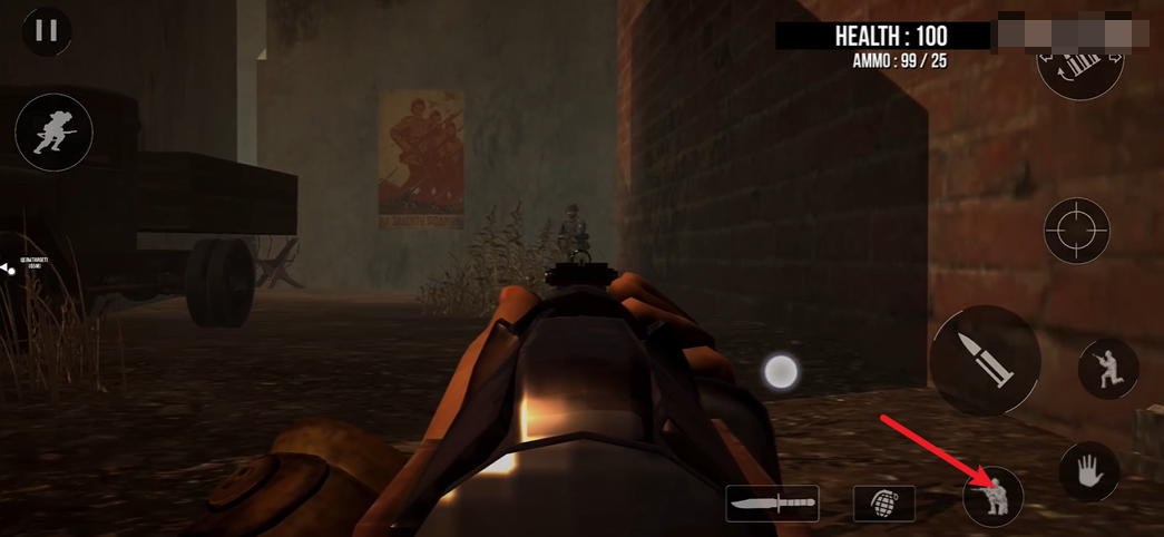 4、点击右侧的瞄准键可进入瞄准状态,提升射击精准度,更容易击倒敌人;