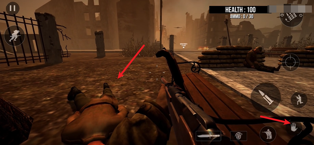 5、当敌人被击败后,靠近其武器并点击右下角的小手图标,即可拾取并使用;
