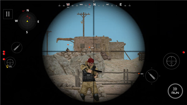 3、长按屏幕右半区进入瞄准镜模式,滑动微调准星,松手瞬间完成射击;注意屏幕边缘红光提示——那是敌人正在瞄准你的危险信号