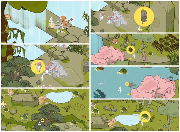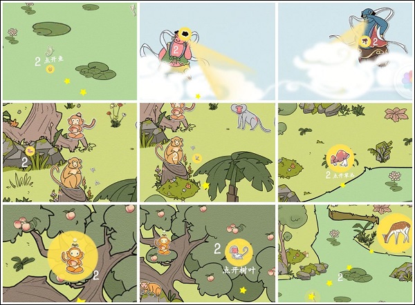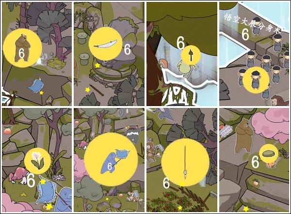 点击关卡图标即可进入挑战,画面下方实时显示待寻目标清单,所有物品均隐藏于精心绘制的西游场景中。