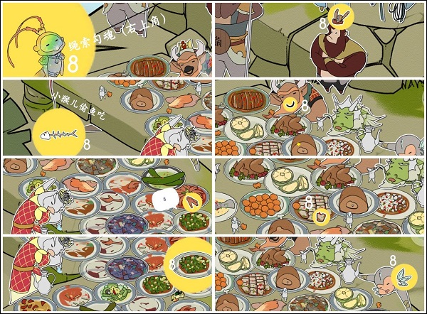 部分目标会使用伪装术或藏于动态交互区域——比如掀开袈裟、转动蟠桃、触发八戒打呼噜等彩蛋式操作,才能显露真身。
