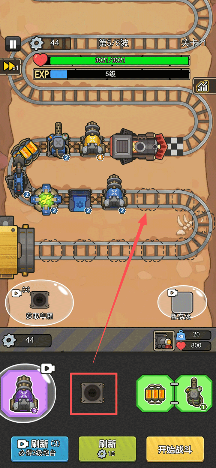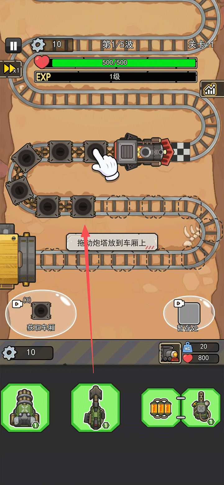1、进入关卡后,将底部炮塔拖动至任意车厢格子完成部署。