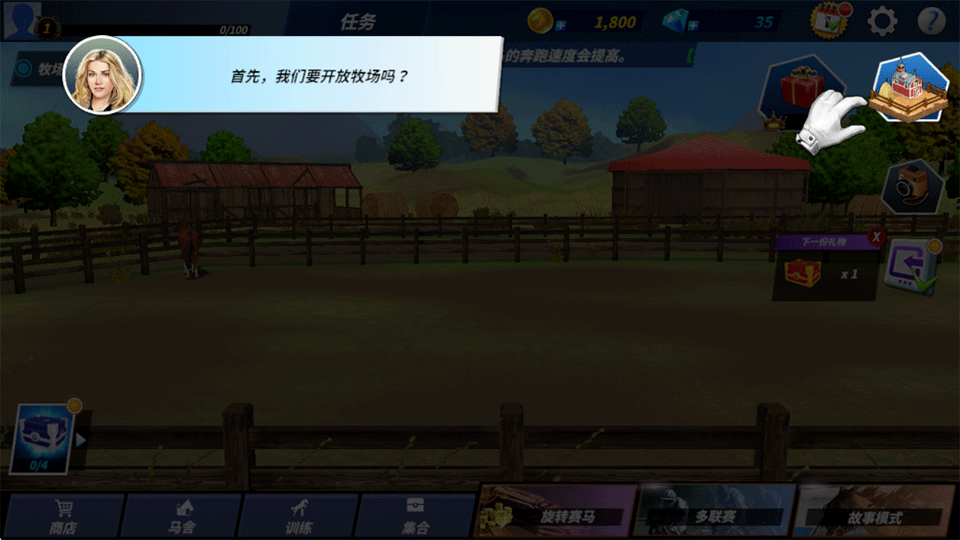 开局即入局——首步解锁专属牧场,奠定你的赛马帝国根基;通过主线任务快速上手,完成目标即时领取资源奖励,稳步提升经营与竞技实力;进入故事模式后,一键报名参赛,开启属于你的荣耀征程。