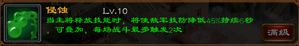 侵蚀,削弱型技能,变相加强的技能伤害,技能型武将十分实用的技能,比如吕布,夏侯淳实用都是十分好的。