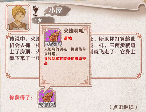 4、家里来了神鸟,需要30灵敏,获得一件遗物