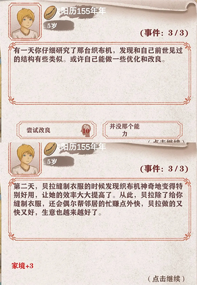 1、修织布机:四五岁时出现,需要10智商,家境+3