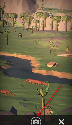 3、最后,对准火山区域有恐龙出现的场景进行截图,完成拍照后即可达成任务目标。