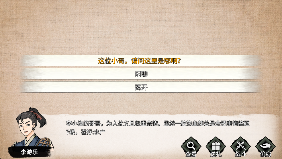 1、点击场景中任意角色即可开启互动——对话、送礼、切磋、静观,选项背后皆有因果链;