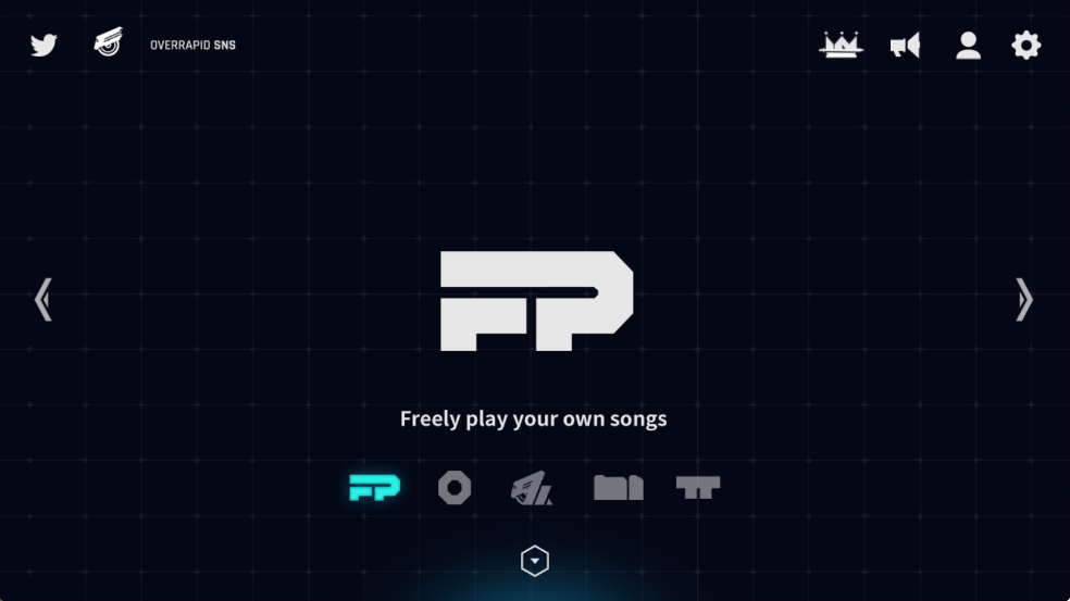启动游戏后,首先进入歌曲选择界面——所有已解锁曲目一目了然,点击即可开玩;左下角【FREEPLAY CONSOLE】是你的中枢控制台:登录账号同步进度、下载新增曲包、自由切换1~6键模式、调节难度等级、进入商店购买DLC,全部操作一步直达。