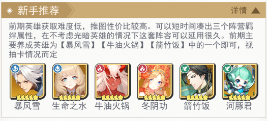 阵容组成:暴风雪+生命之水+牛油火锅+冬阴功+箭竹饭+河豚君