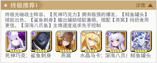 阵容组成:死神巧克力+鲨鱼刺身+燕窝+水晶马卡龙+深海八爪鱼+鲱鱼罐头